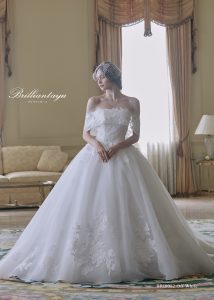 そしてチュールのロングトレーンを組合わせた華やかなウェディングドレス✨