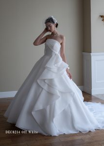 角度によって様々なフォルムを見せるフォトジェニックなAラインドレスです