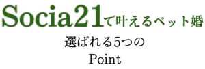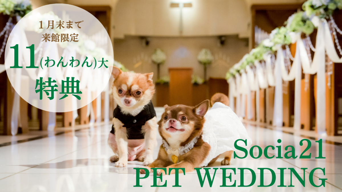 リングドッグ・肉球結婚証明書・わんちゃんファーストバイトなどペットと一緒に憧れの演出が叶えられるのはSocia21ならでは!当日の過ごし方やペット同伴での不安点なども専属プランナーと相談しながら決めていこう!
