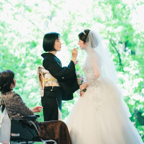 - 新婦様は幼いころから娘のように可愛がってくれたおば様に”紅差しの儀”を行っていただき